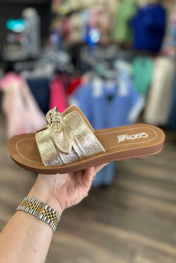 When comfort meets a little glam… you get these. The Corkys “Kickoff” sneaker in Gold Crinkle gives you everyday wearability with a bold metallic twist that instantly levels up your casual outfits.