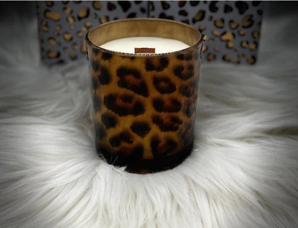 Leopard Print Wood Wick Candle - Peppercorn Citrus