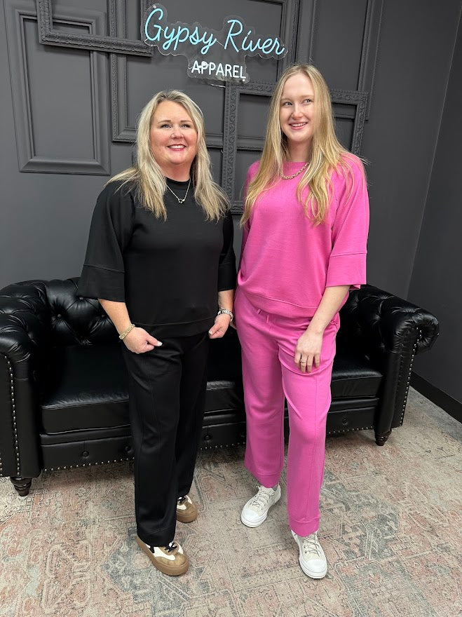 Hacci Long Sleeve Round Neck Tee & Jogger Set