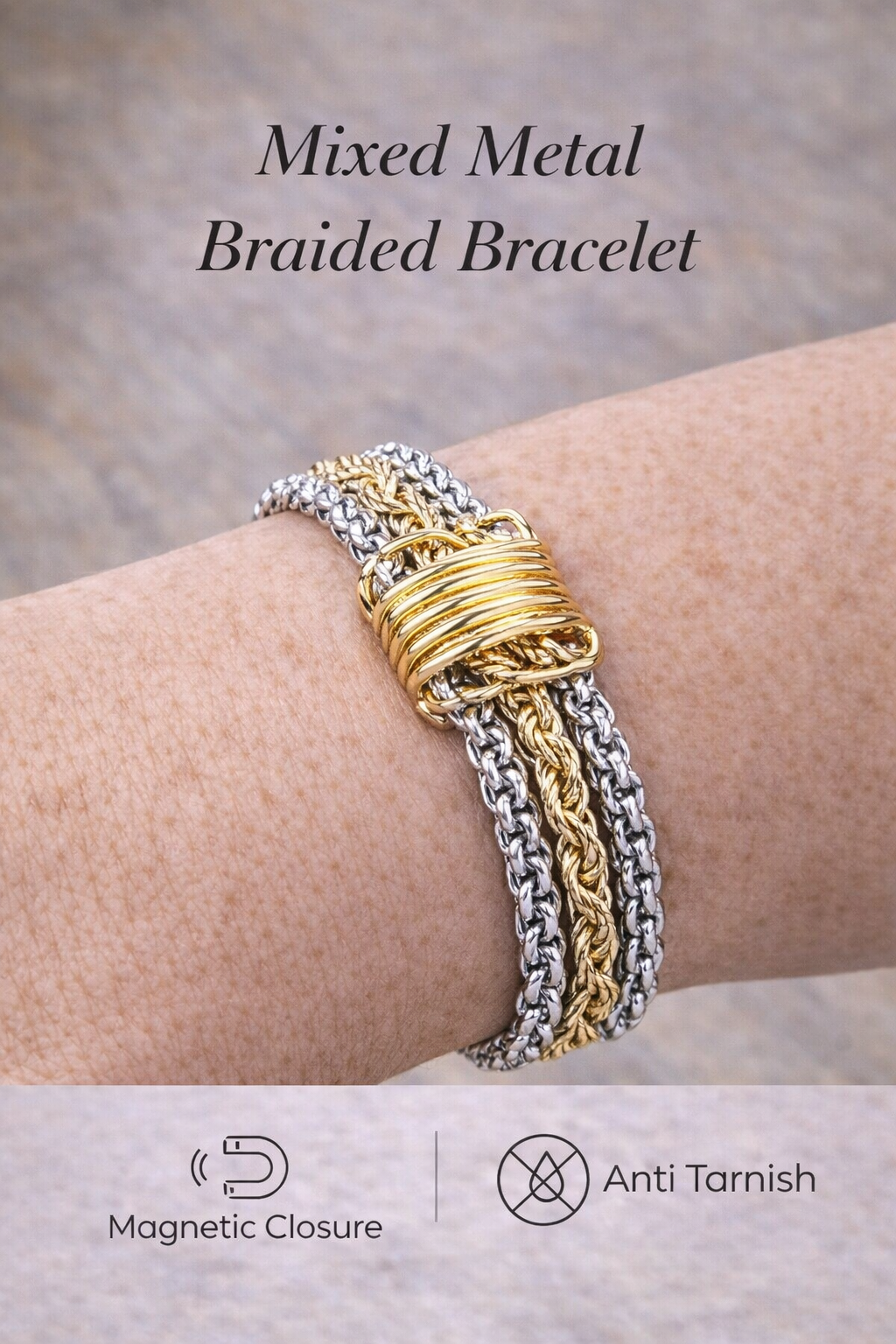 Mixed Metal Triple Strand Magnetic Bracelet