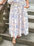 Step into effortless elegance with our Blue Floral Maxi Skirt! This beautiful skirt features a lightweight, flowy silhouette that moves with every step. The romantic blue floral pattern on a crisp white background gives it a timeless, feminine feel—perfect for garden parties, brunch dates, or summer strolls.