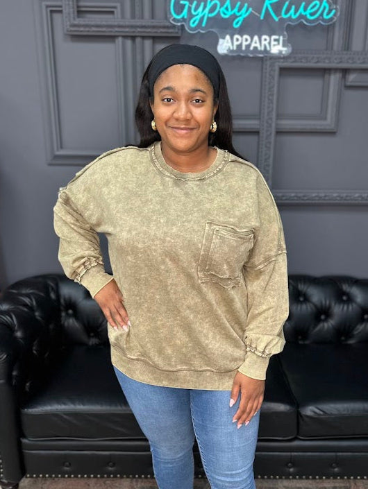 Acid Wash French Terry Pocket Pullover