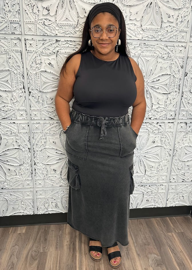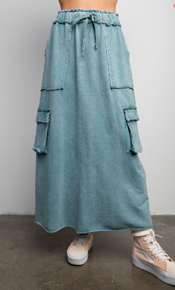 Mineral Wash Terry Knit Cargo Skirt