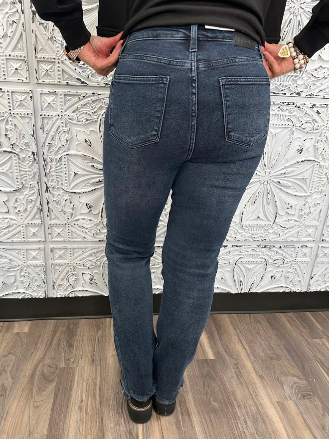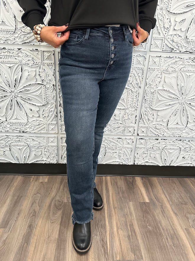 High Rise Button Fly Straight Leg with Frayed Hem (32 1/2" inseam) by Judy Blue