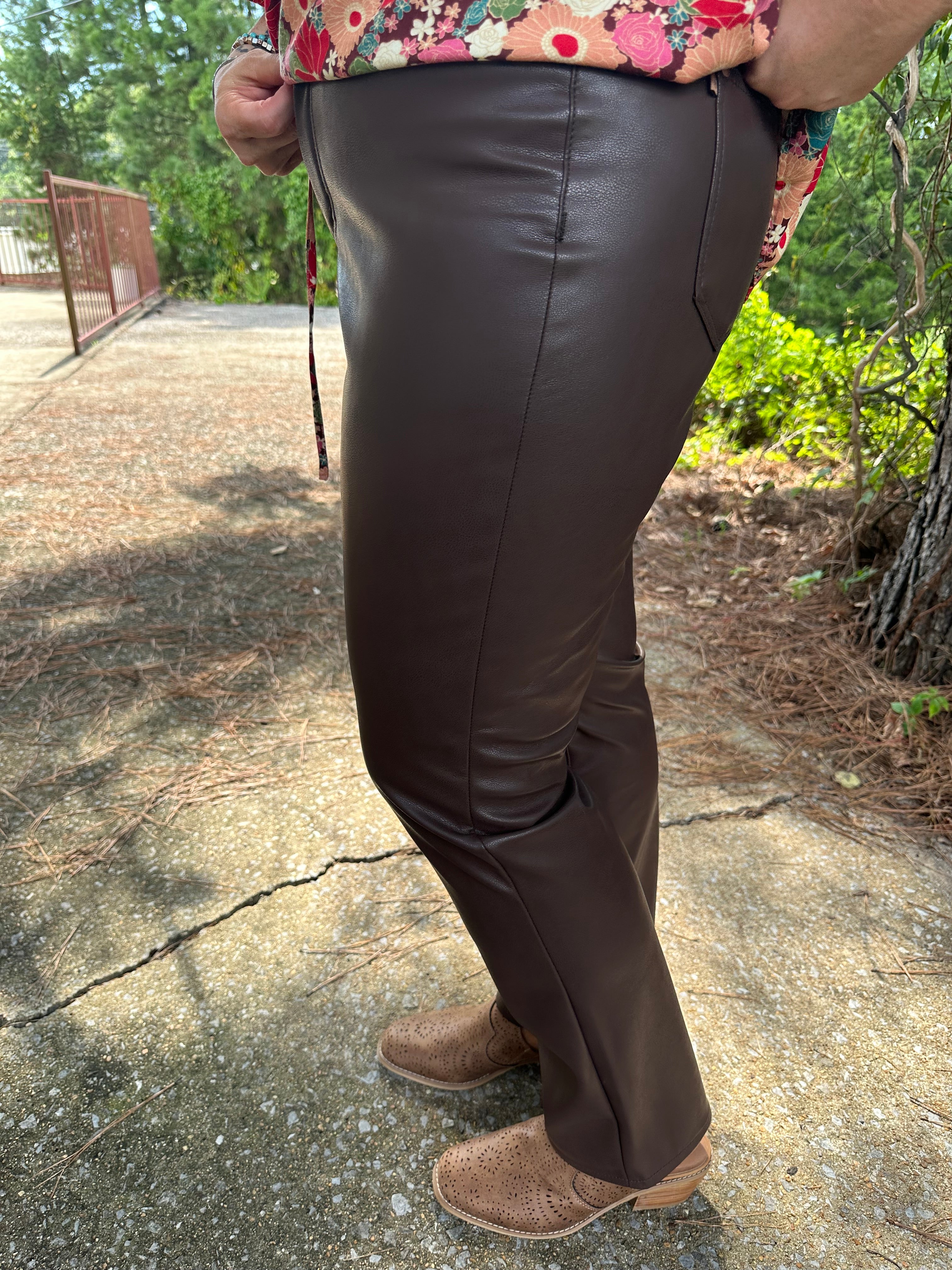 Reg/Curvy High Waist Tummy Control Faux Leather Straight Leg Pant