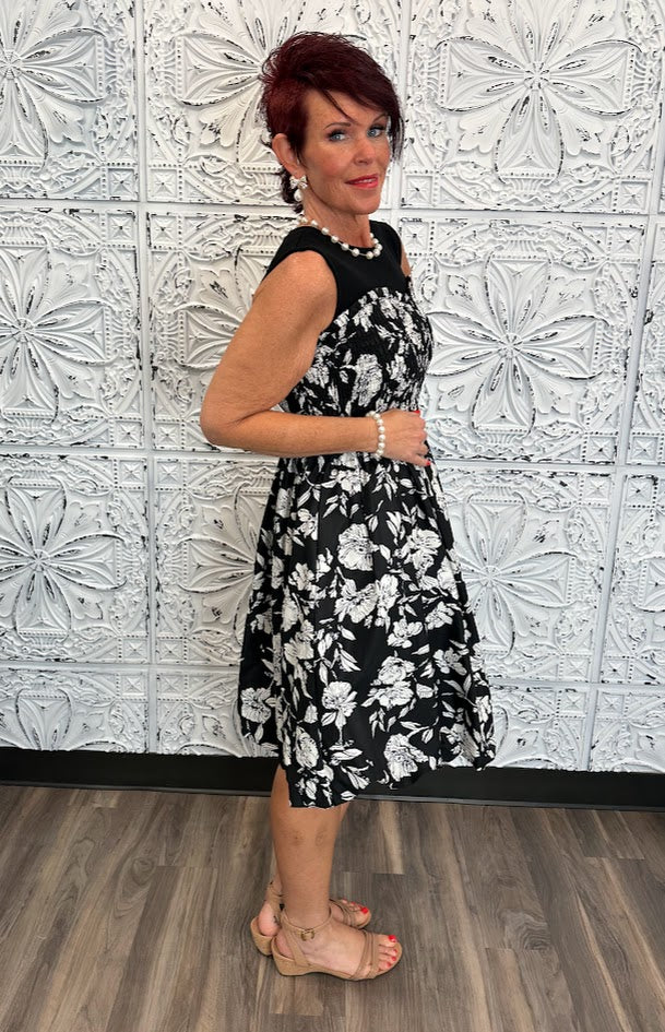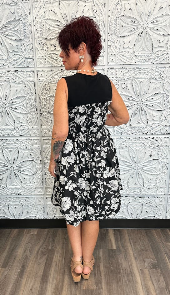 Smocked Bodice Floral Sleeveless Dress