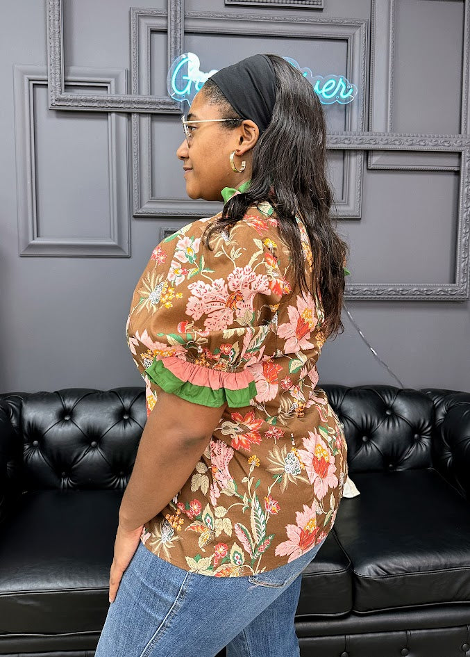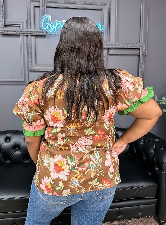 Floral Print Top with Shoulder Puff Sleeves
