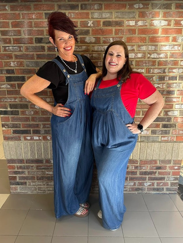 Chambray Overall Jumpsuit with Button Tab Straps