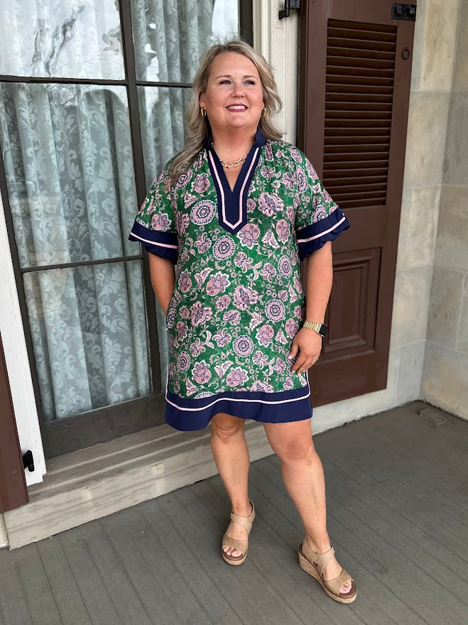Green and Navy Floral Dress