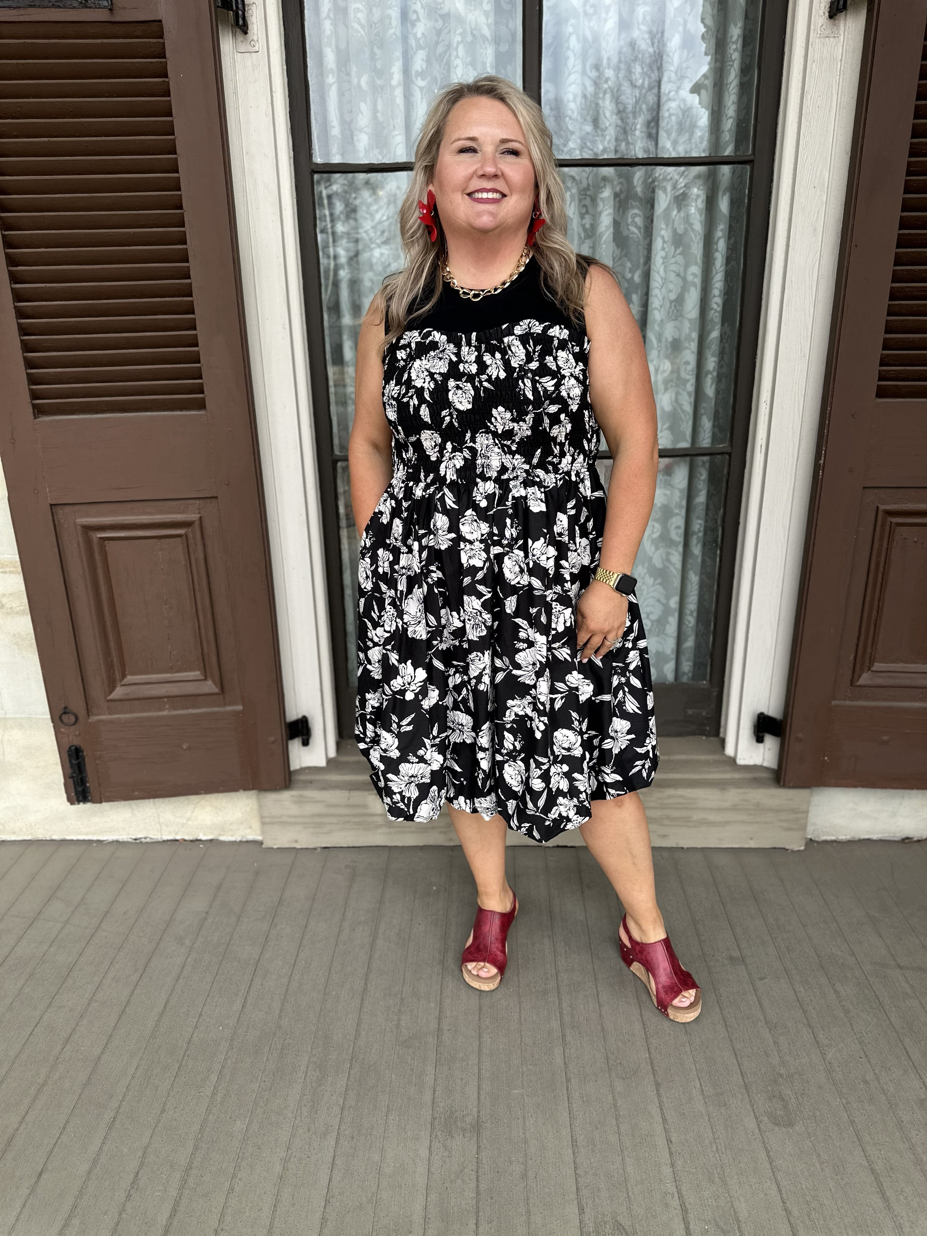 Smocked Bodice Floral Sleeveless Dress