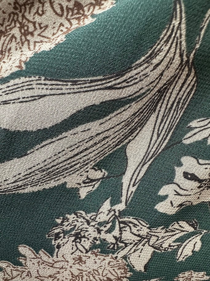 Allover floral print on a rich green background