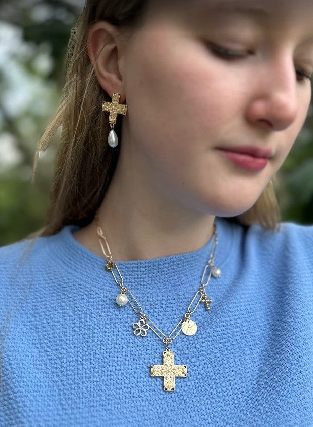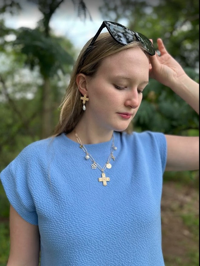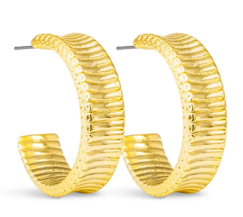 Gold Hexagon Grey Mother of Pearl Bee Earrings