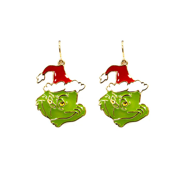 Steal a few hearts (and maybe a Christmas cookie or two) in these one inch Grinch Face Drop Earrings! Featuring everyone’s favorite holiday grump, these lightweight gold-trimmed earrings add just the right amount of sass and sparkle to your festive looks. Whether you’re feeling merry or a little “meh,” they’re the perfect accessory to show your resting Grinch face with style.