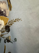 Blue Floral Long Sleeve Blouse with Ruffle V-Neck