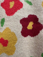 Bring cheerful vibes into cooler days with this bold floral sweater! The soft knit fabric feels like a hug, while the bright red and mustard blooms add a playful pop of color. Pair it with jeans for a casual weekend look or layer it over a collared shirt for something extra cute.