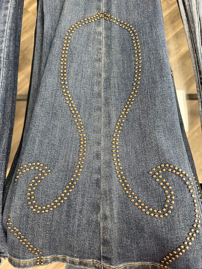Make a statement with the Western Stud Flare Jeans by Judy Blue—where comfort meets standout style. Designed with a flattering high-rise fit, these jeans slim through the thigh and break into a dramatic flare from the knee, giving you that elongating silhouette we all love.