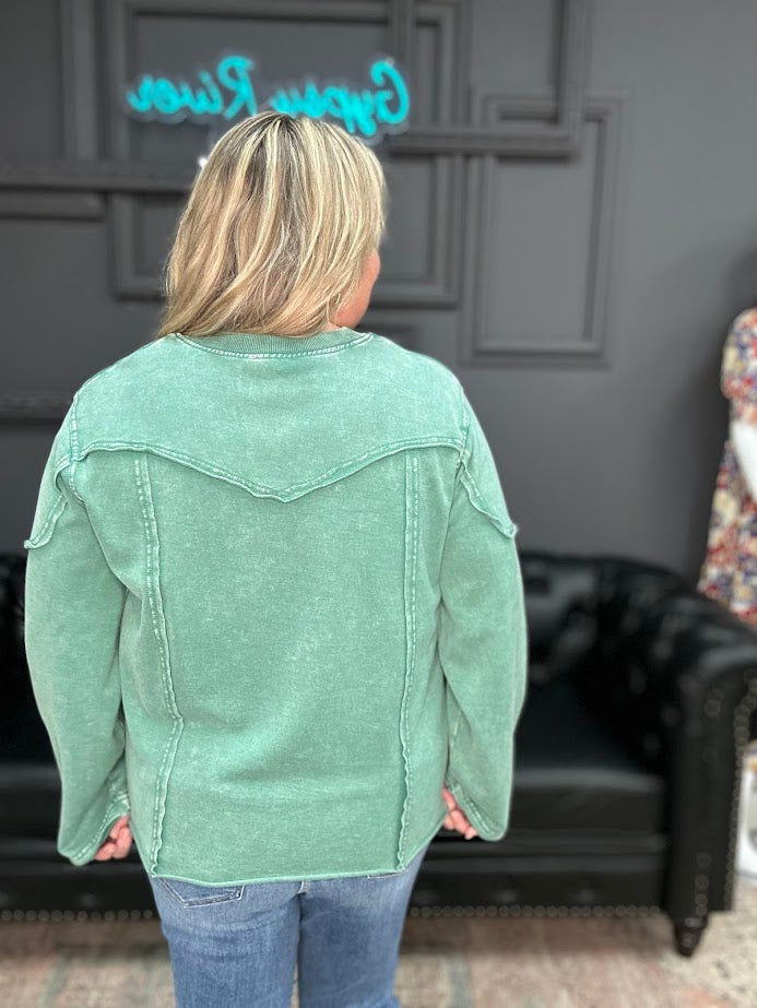 Say hello to your new favorite off-duty top. With its relaxed, oversized fit and unique mineral-washed finish, this pullover looks like that perfectly broken-in piece you’ve loved forever—but feels brand new. The slightly flared sleeves give it a modern, effortless shape, while exposed seams add that touch of edge. Toss it on with jeans, joggers, or even printed pants and you’re ready for cozy, casual style that still stands out.