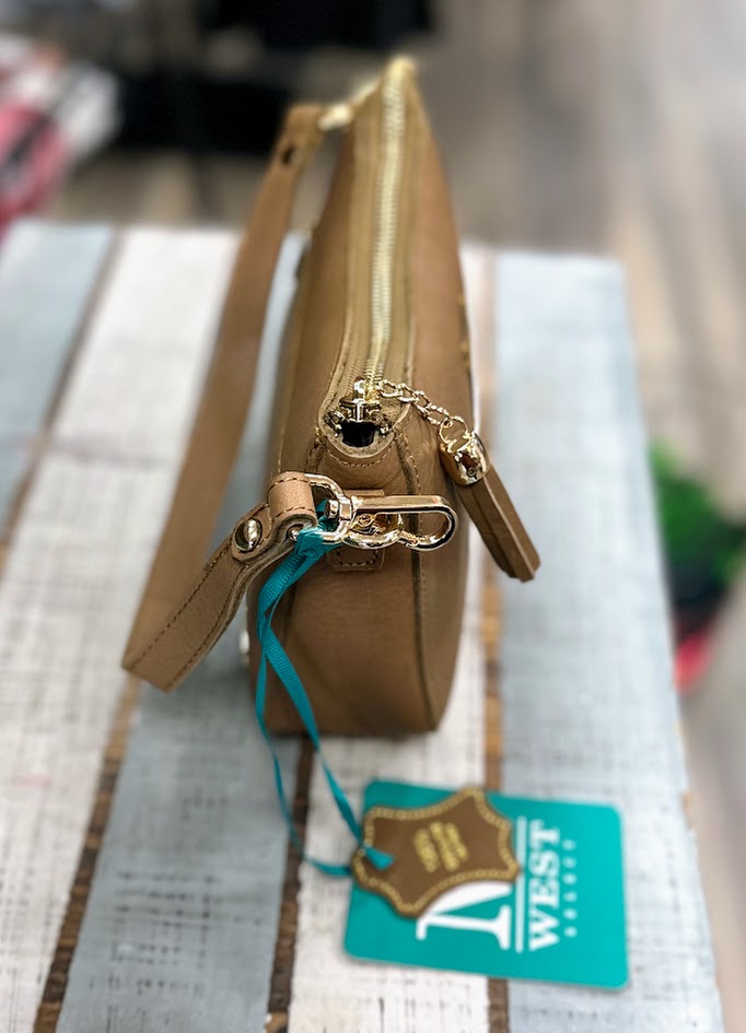 Timeless style, everyday ease. The M West Select Genuine Leather Crossbody in camel is crafted from 100% genuine leather for durability and sophistication. Its sleek silhouette and minimalist design make it a versatile piece you can carry anywhere—from casual errands to evenings out. The adjustable strap gives you comfort and versatility, while the gold-tone hardware adds a touch of polish. A true classic that only gets better with time.