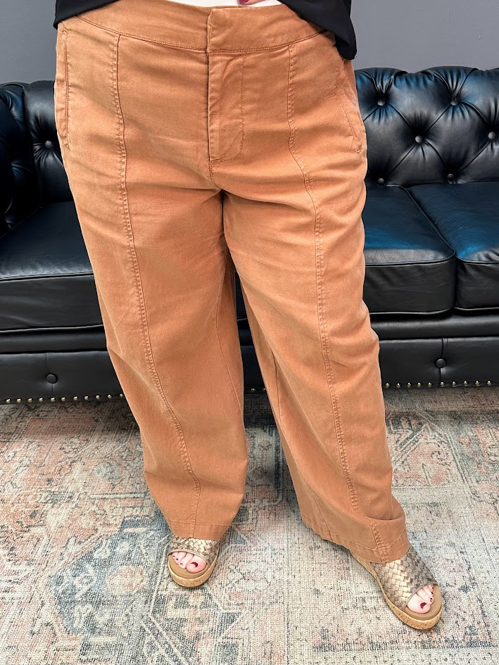 Meet your new “go-with-everything” trouser. This Liverpool wide leg pairs a rich mocha brown with a soft, cotton-rich stretch that moves with you. Front seam detailing gives a long, lean line while the relaxed leg reads modern and polished—perfect with blouses for work, tees on the weekend, and sweaters when the temps dip. Dressy enough for the office, comfy enough for all-day errands.