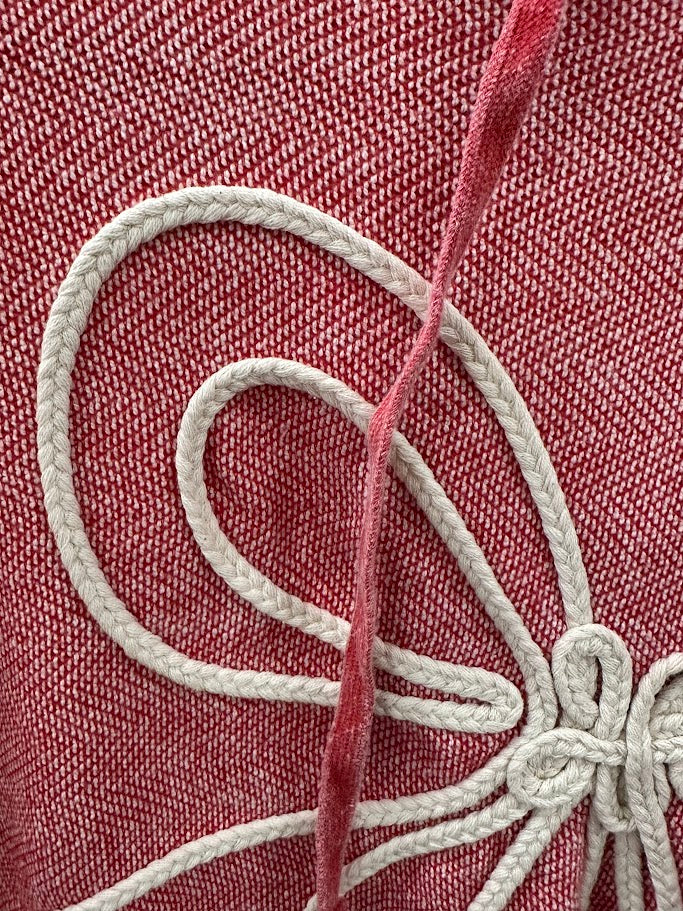 Playful and cozy, this pullover hoodie features a bold rope bow embroidery on textured herringbone fabric for a casual yet standout look. With its relaxed, boxy fit and comfy details, it’s the perfect piece to throw on for errands, lounging, or coffee dates.