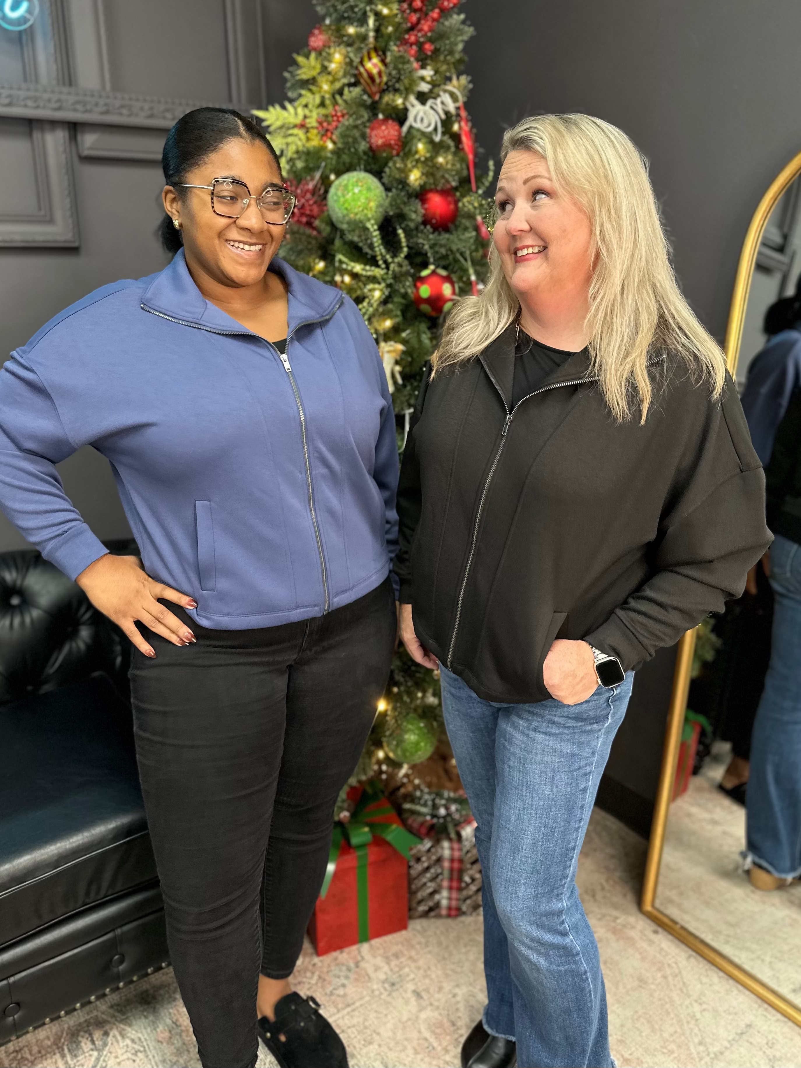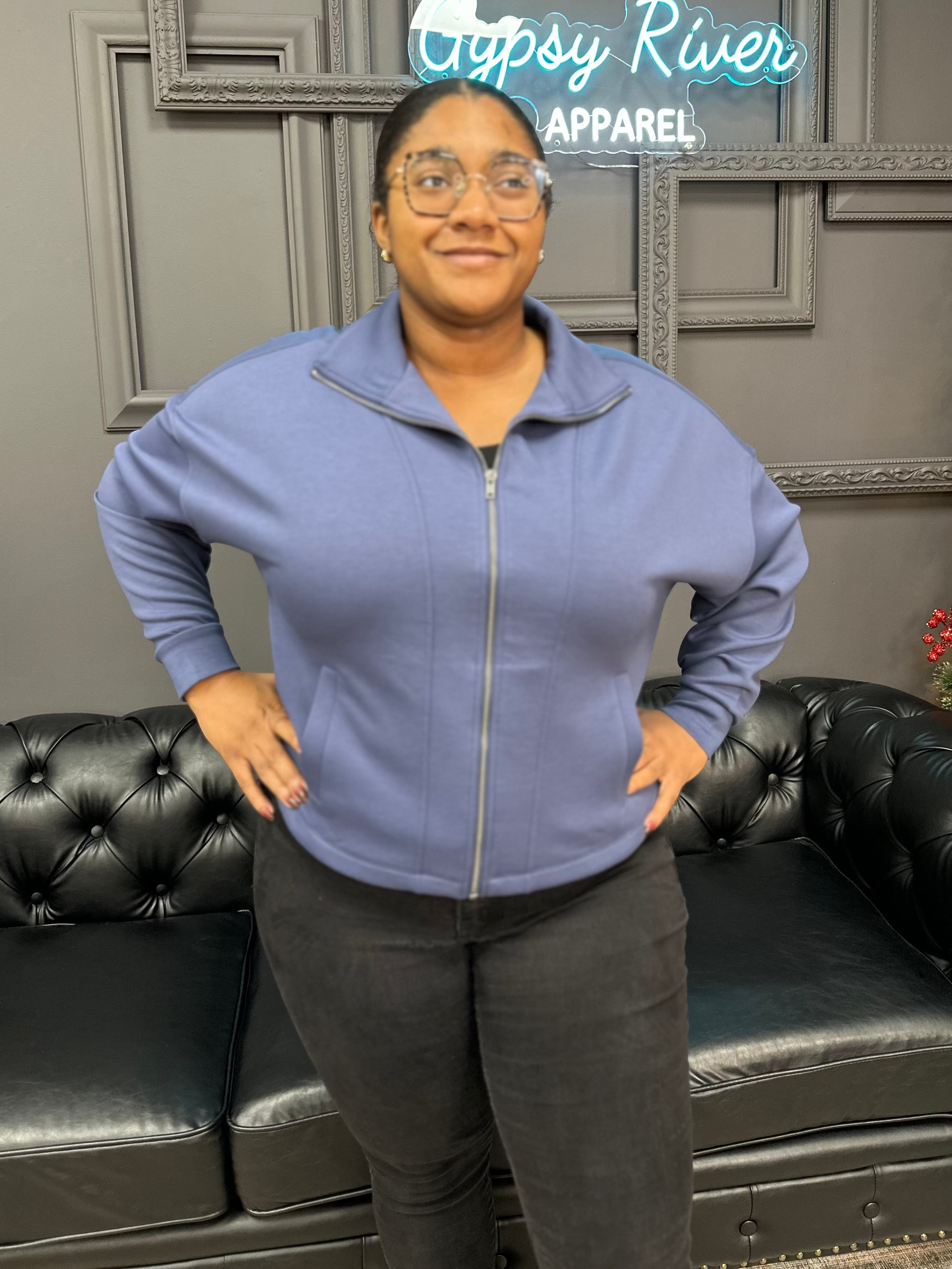 Meet the jacket that makes leaving the house feel a little easier. This scuba full-zip gives you that smooth, stretchy feel everyone loves—structured enough to look intentional, comfy enough to throw on over anything.