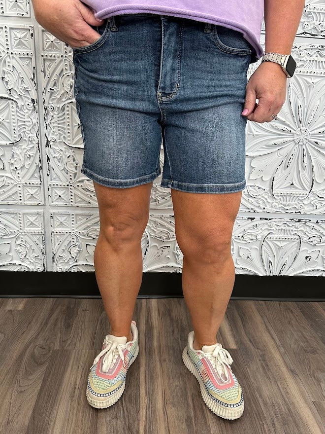 Midrise Tummy Control Mid Length Shorts by Judy Blue (5.5" inseam)