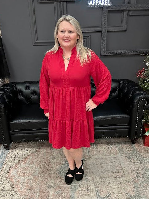 This Curvy long sleeve tiered dress is one of those effortlessly flattering pieces you can wear for so many occasions. The soft V-neckline gives it a feminine, elongating look, while the tiered skirt adds beautiful flow and movement without feeling bulky.