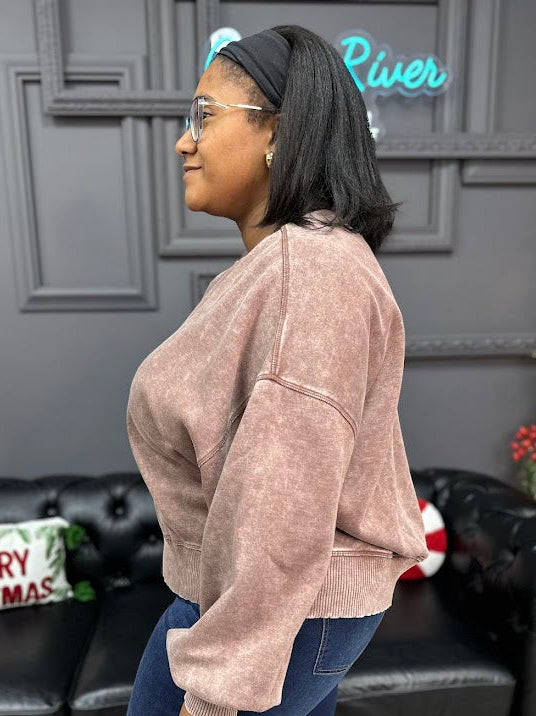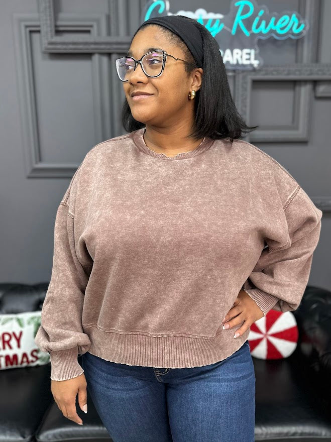 This acid-wash sweatshirt blends ultra-soft comfort with a relaxed, laid-back vibe that makes everyday dressing feel effortless. With its cozy brushed interior, drop sleeves, and ribbed trim, it’s the perfect throw-on-and-go top for casual days, errands, or cozy nights in.