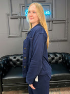Clean lines, timeless structure, and that rich navy color you’ll never get tired of—our Classic Navy Button-Up Jacket is the versatile layer your wardrobe’s been missing. With a slightly boxy fit, full button front, and soft-yet-substantial fabric, this jacket is perfect for layering over tees, lightweight sweaters, or even a simple dress. The drop shoulder and relaxed silhouette give it a modern twist while keeping it totally effortless.