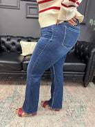 bootcut jeans, mid-rise jeans, classic denim, stretchy jeans, boutique denim, women’s jeans, dark wash jeans, comfortable jeans, flattering fit, everyday denim