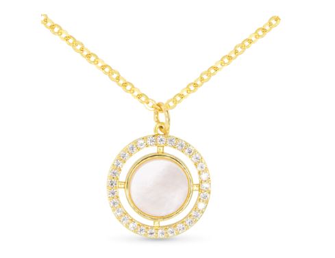 Gold CZ & Mother of Peral Circle Pendant Necklace
