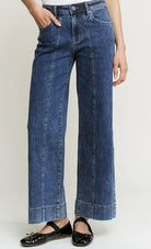 If you’ve been looking for denim that instantly makes your legs look longer… this is it. The front seam detail creates a sleek, elongating line while the wide leg silhouette gives you that modern, on-trend shape without feeling overwhelming.