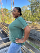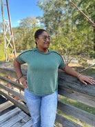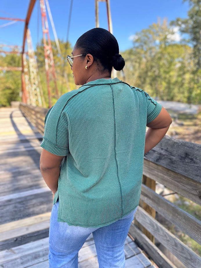 Raised Rib Cuff-Sleeve Raw Edge Top
