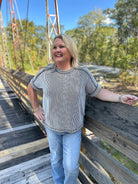 Easy, breezy, and made for real-life days. This textured raised-rib knit drapes with a relaxed, boxy silhouette. Rolled cuff sleeves and raw-edge finishing add a little attitude, while the length pairs perfectly with denim, trousers, or leggings. Comfy without looking sloppy—your “grab it and go” top.