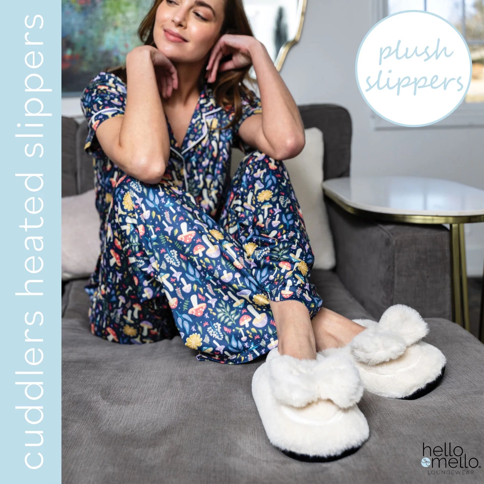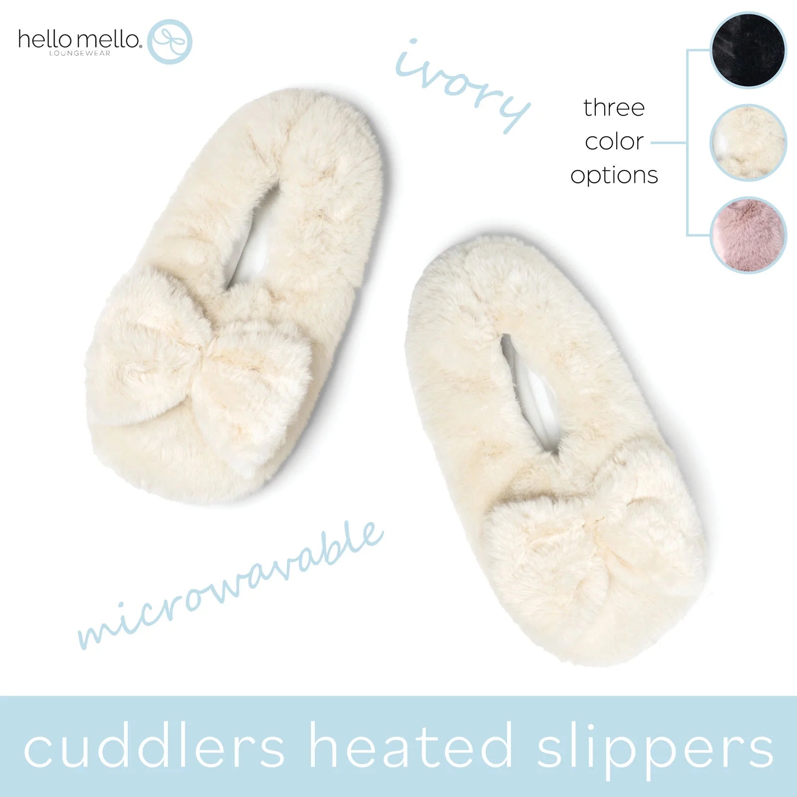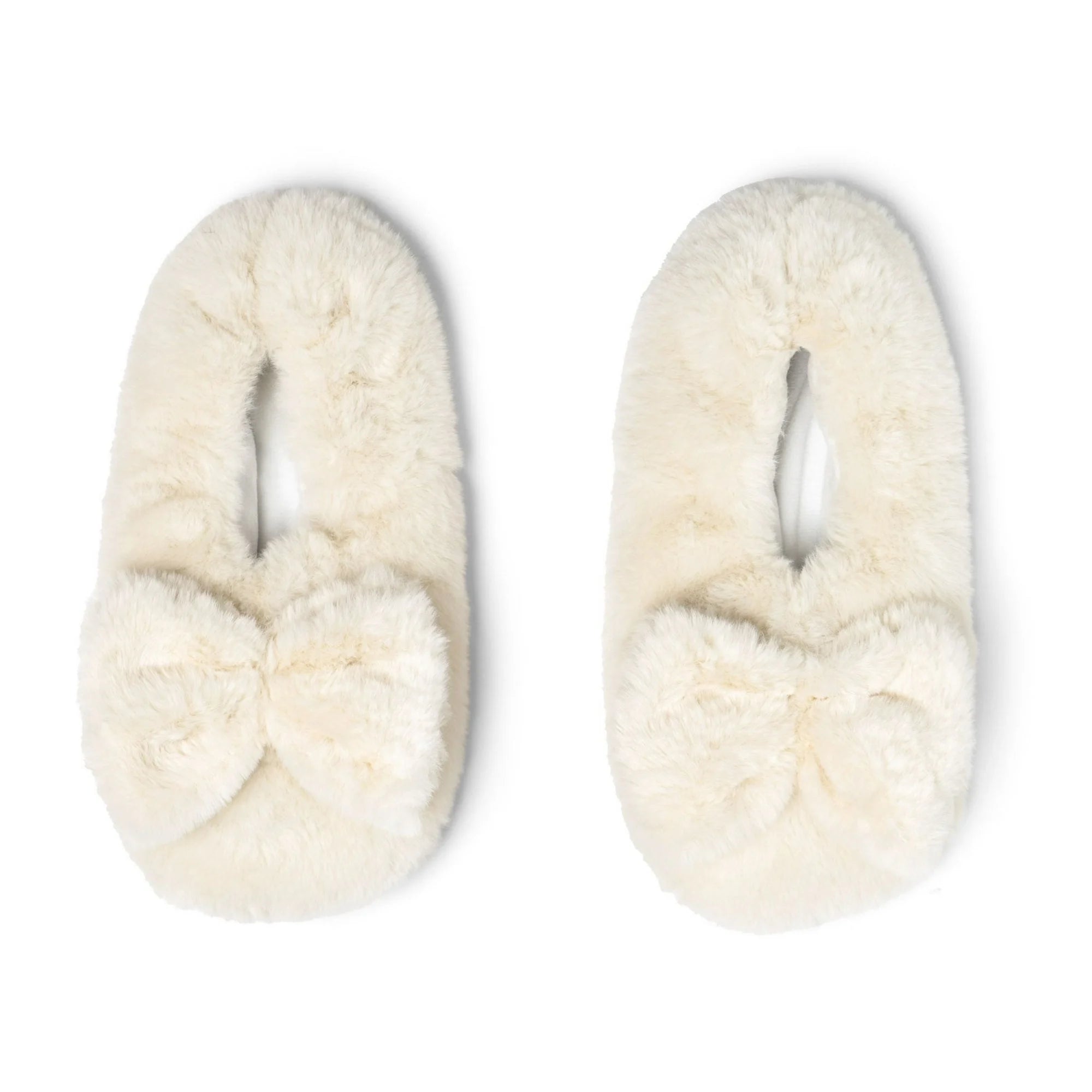 These super plush, microwavable slippers are made for coziness! Each one has an upper panel filled with maifan stone beads that retain heat and put gentle weight on your feet to help you relax. Makes the perfect caring gift or treat-yourself purchase. Quick Features: Super plush, microwave-safe slippers Upper panel filled with stone thermal spa beads Padded sole with non-slip grips Stretchy elastic heel 2 sizes - S/M (5-7) and L/XL (8/10)