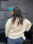 The crew neckline with ribbed band and cuffed sleeves keep it classic, while the tiny fruit embroidery—available in cherry, blueberry, or orange—adds just the right pop of color and charm. Easy to pair with denim or leggings, this pullover is as versatile as it is fun.