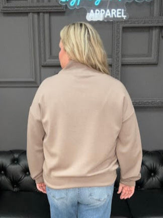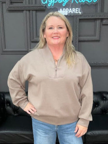 Meet the pullover that blends luxury comfort with effortless style. Crafted from a silky smooth Modal Poly Span scuba fabric, this piece is lightweight yet cozy with a soft, luxe hand feel. The oversized fit gives it a laid-back vibe, while the quarter zip closure and paneled V-neckline add a touch of sporty chic.