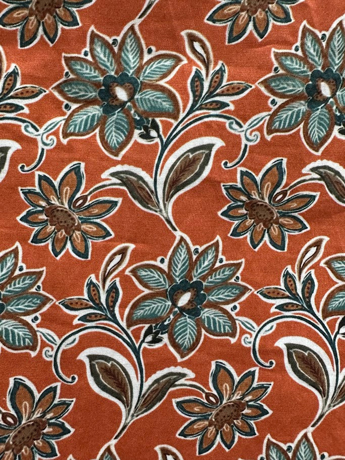 Fall Floral 3/4 Sleeve Top with Scallop Accent