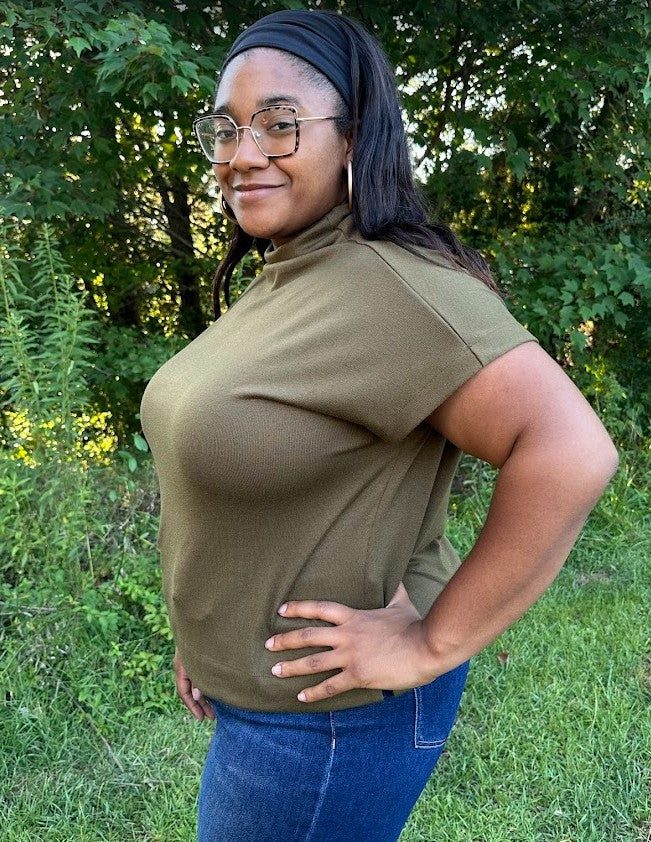 Knit Mock Neck Pullover Cap Sleeve Top