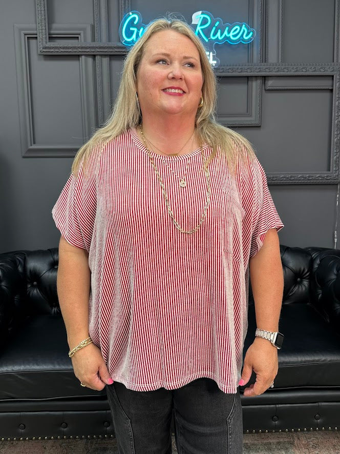Corded Rib Oversized Short-Sleeve Top