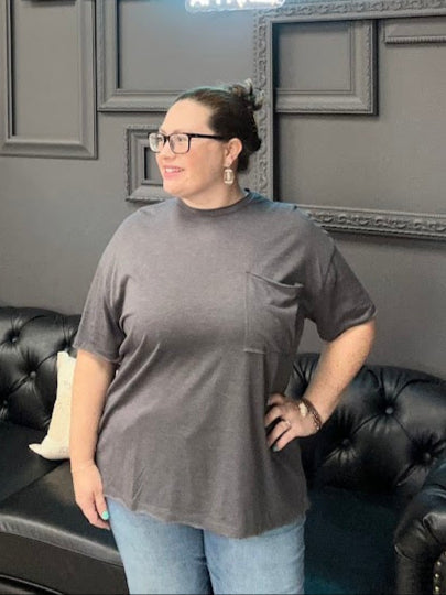 Acid Crinkle Wash Crop Tee with Front Pocket