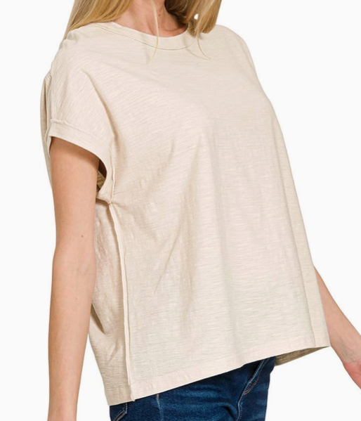 Cotton Modal Slub Rolled Sleeve Tee