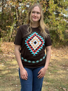 Aztec Print Graphic Tee  - Chocolate Brown T-Shirt. Lightweight and perfect for Fall!