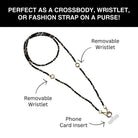 The Beaded Strap Collection combines elegance with practicality, featuring intricately designed beaded straps that transform your phone case into a fashionable crossbody accessory. The multifunctional design allows for conversion between a crossbody and a wristlet, or it can be used as a decorative strap on a purse. The included phone card easily slips into the back of your phone case through the charging port, ensuring your device remains accessible while keeping your hands free.