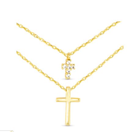 A beautiful way to display your faith with the Amanda Blu® Double Cross CZ Layered Gold Necklace. This double necklace is dipped in 18K gold and features sparkling cubic zirconia crystals. 18"L with extender.