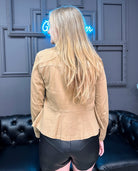 Say hello to the jacket you’ll reach for on repeat. The Peplum Hem Trucker Jacket in camel is a classic piece with modern structure, perfect for layering all year long. The soft, mid-weight stretch twill gives it that broken-in feel from the first wear—no stiff denim vibes here! Functional chest pockets and button-up front keep it timeless, while the flattering seams and just-right length make it effortlessly feminine.