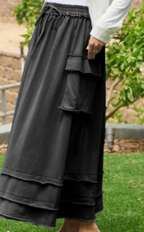 Laid-back meets stylish in this acid-washed French terry maxi skirt—a must-have for effortless everyday wear! Designed with a drawstring waist for an adjustable fit, this skirt combines comfort and function with its ultra-soft fabric and relaxed silhouette. The standout detail? Utility-style cargo pockets, perfect for adding a casual-cool edge (and holding your essentials). Whether you're pairing it with a basic tank or an oversized sweater, this skirt is your go-to for all things comfy and chic.