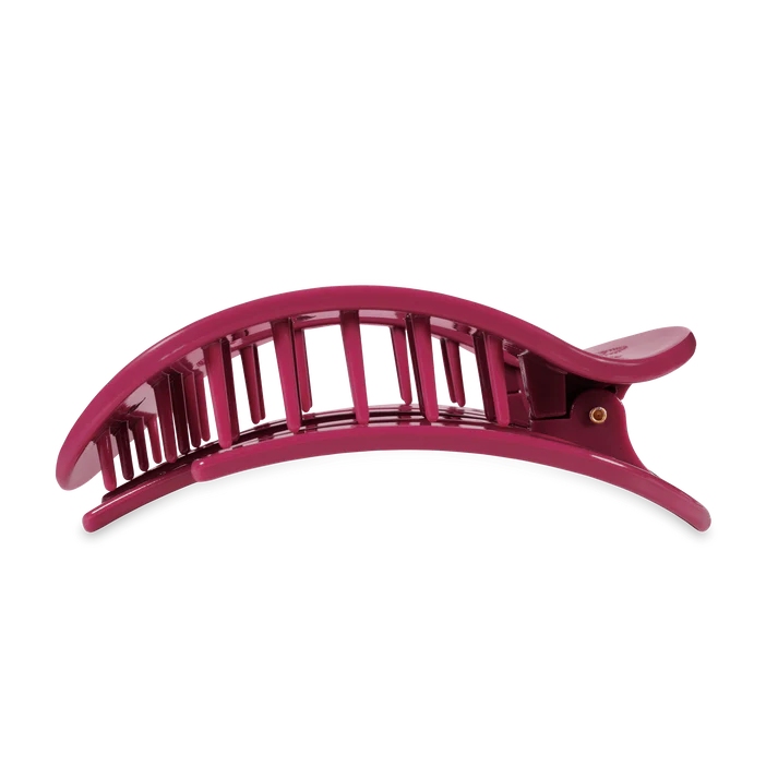Lay flat and relax with the new TELETIES Wild Side Large Flat Round Hair Clip in Deep Magenta. This hair clip is designed to allow you to lay back flat, do yoga, or sit comfortably in a seat with a headrest, and it is made with the same material that is nearly unbreakable.